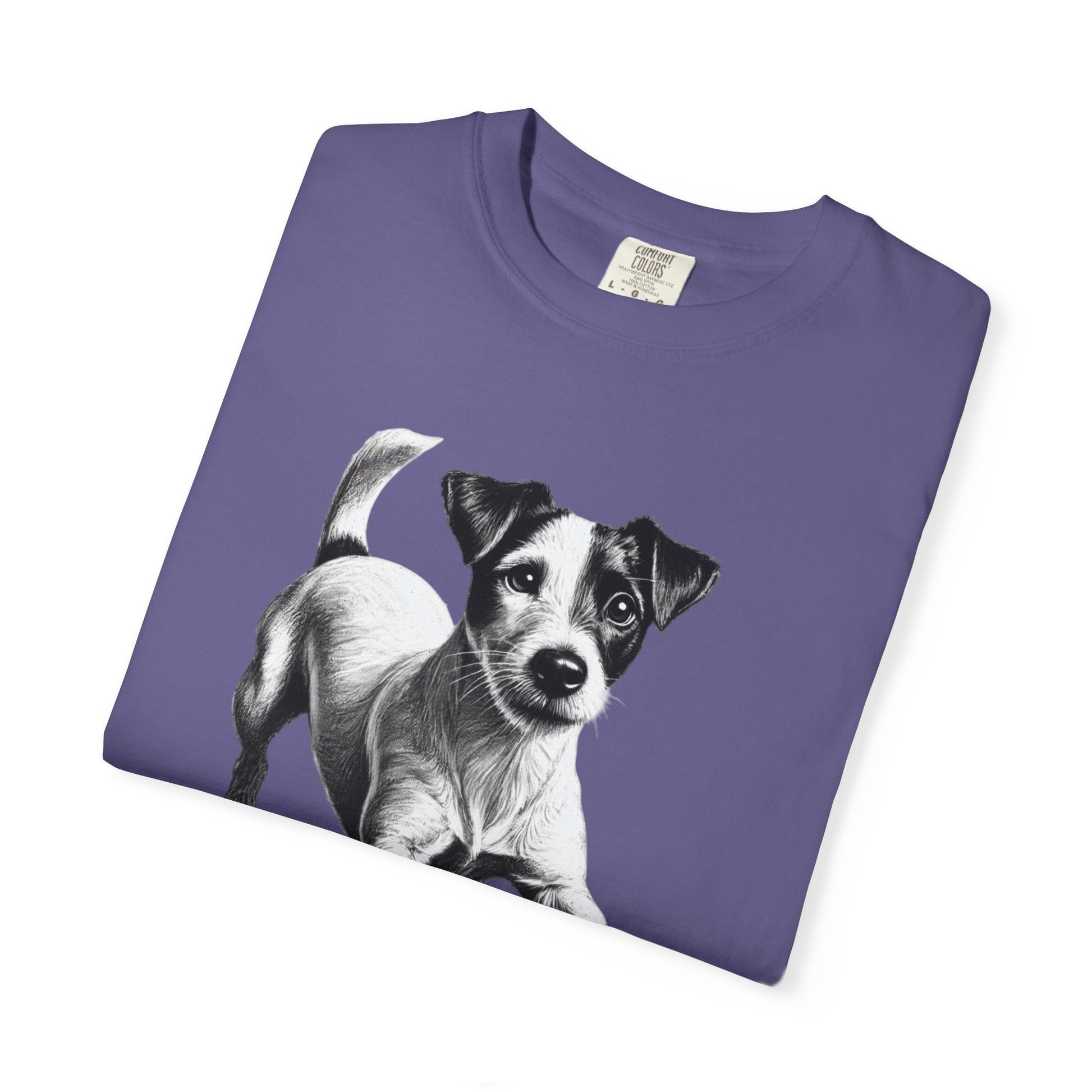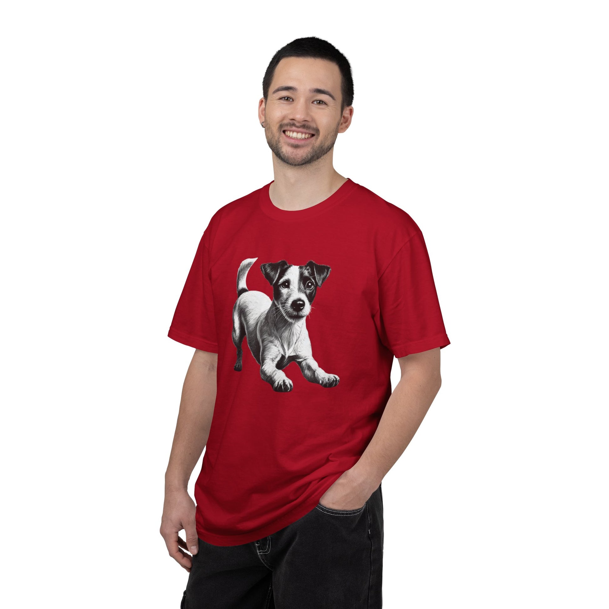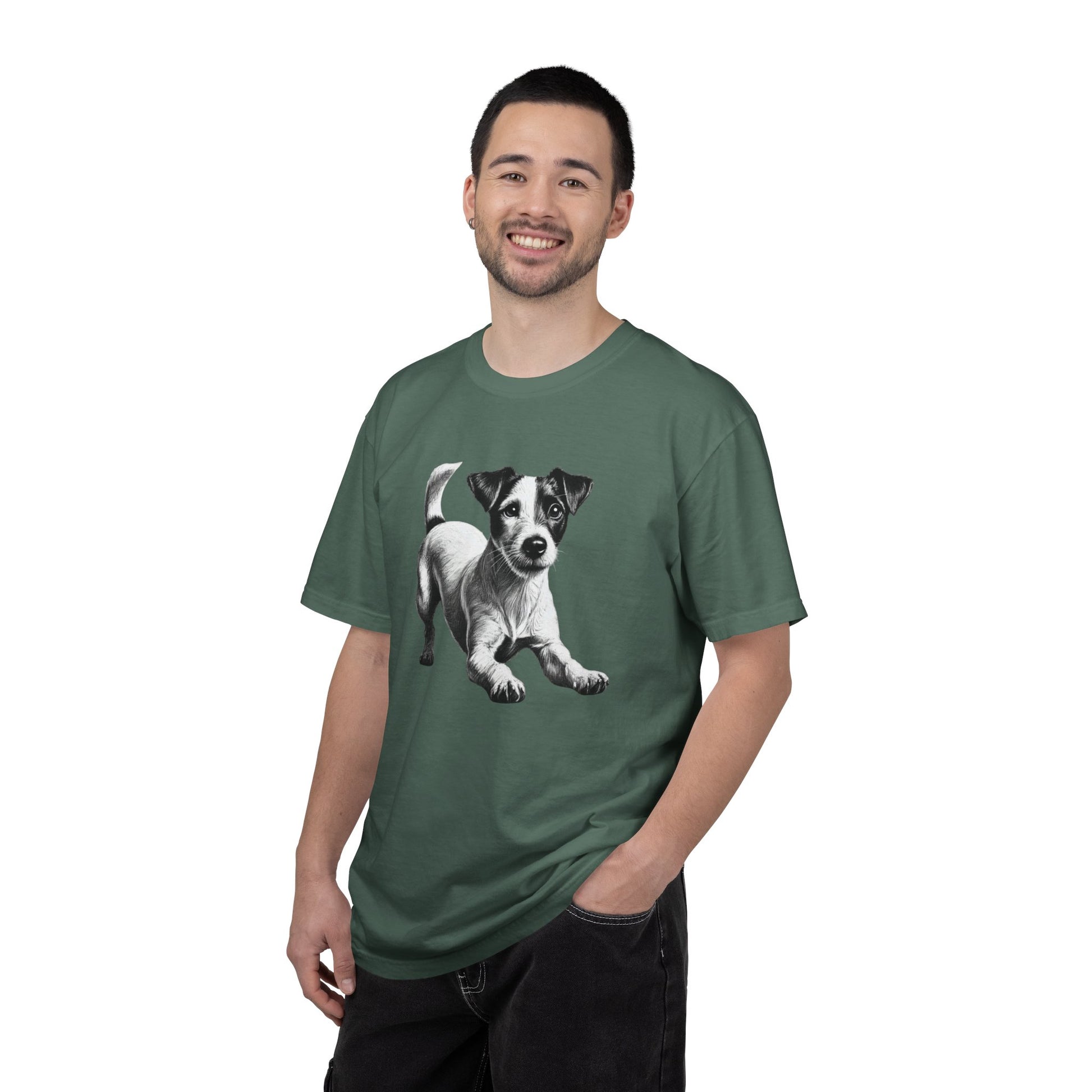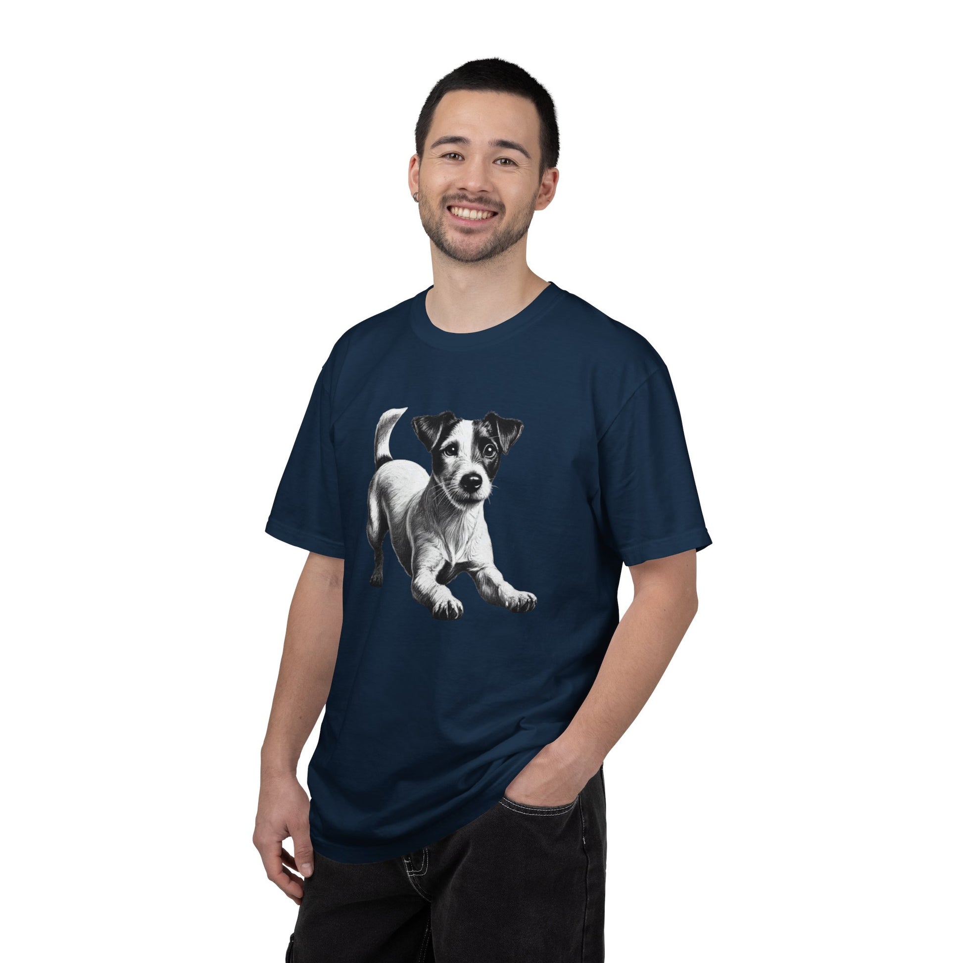 Jack Russell Puppy Graphic T-Shirt — Playful Dog Tee with Paw Print Back